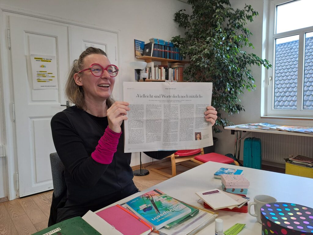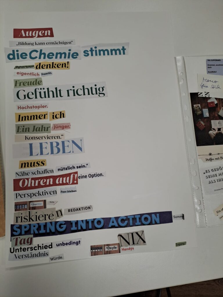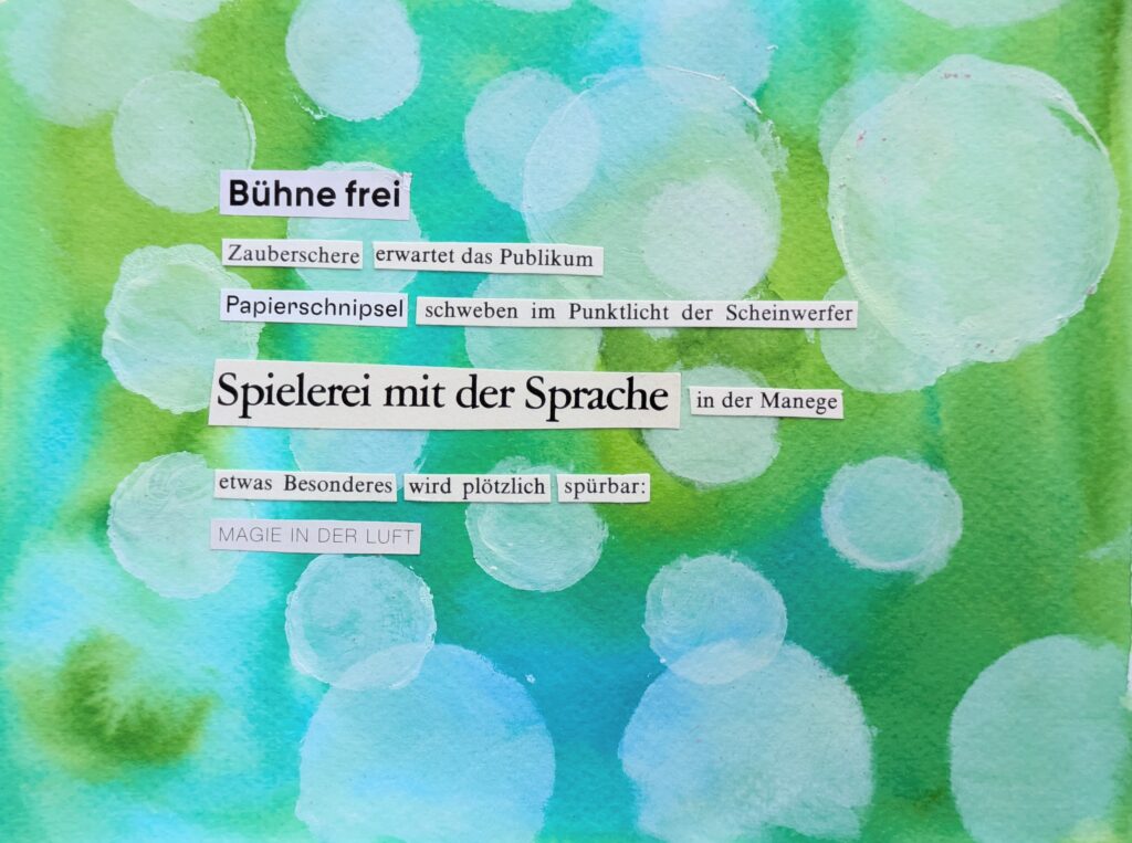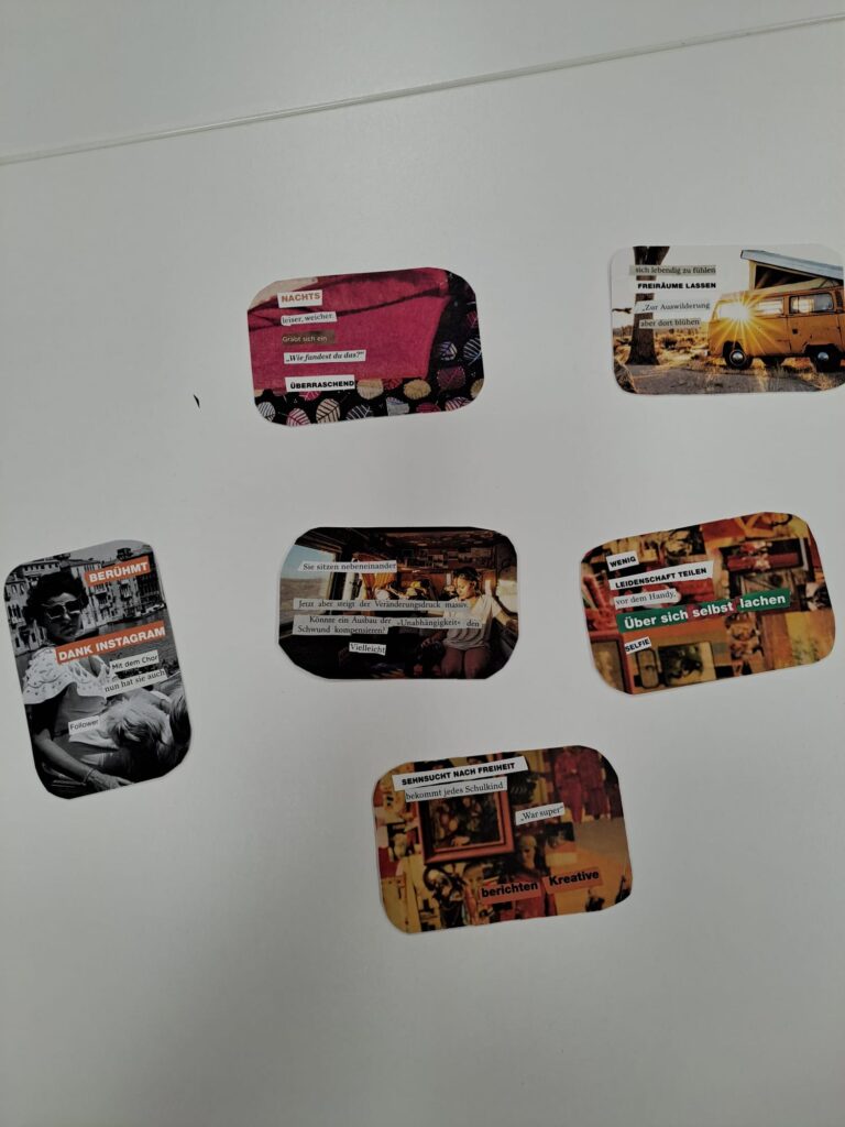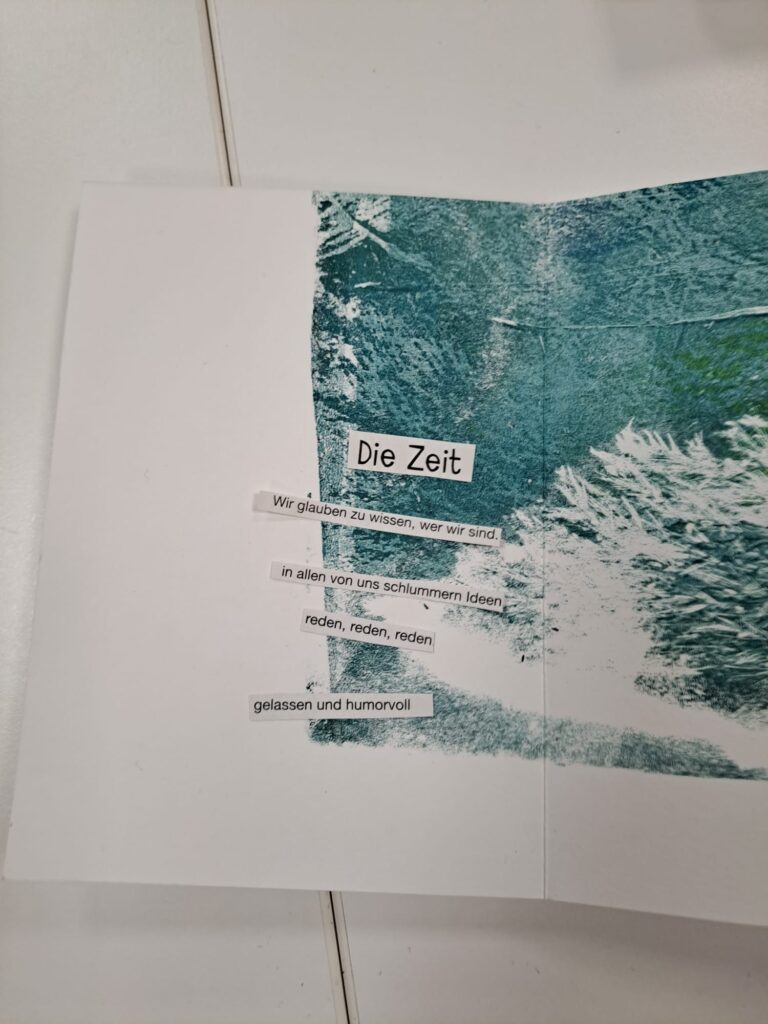 Wir schnipseln Elfchen und Haikus, füllen Faltheftchen mit kurzen Schnipselgeschichten, gestalten Orakel-Karten oder verbinden Texte mit Bildern.